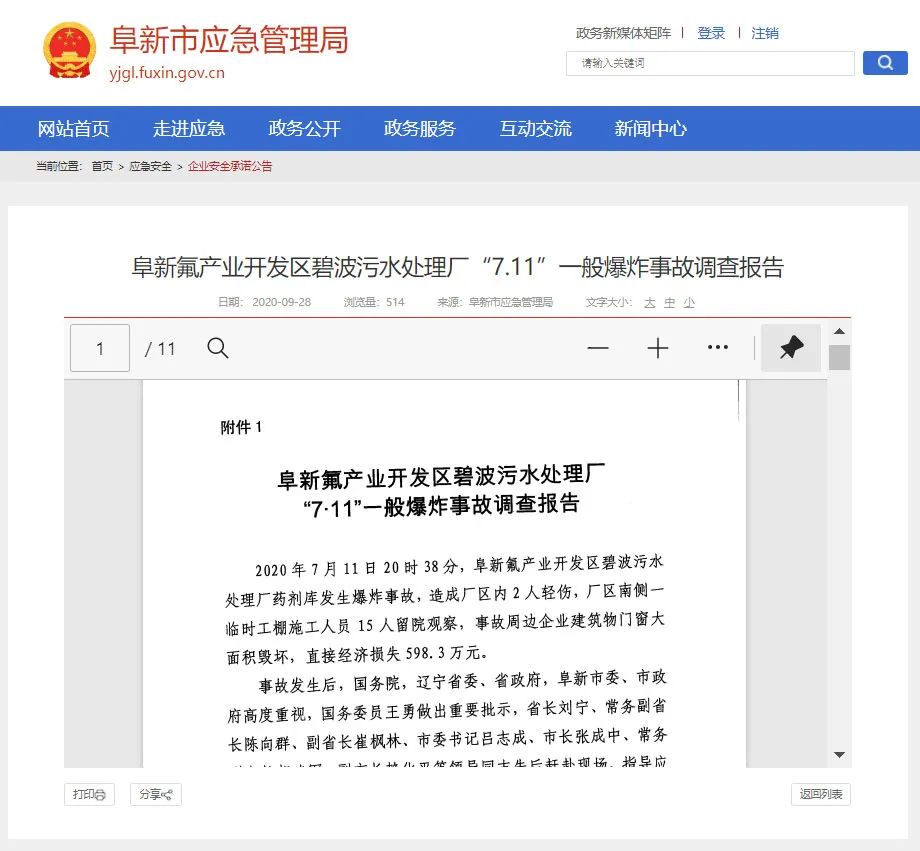 文章導(dǎo)讀近日,阜新市應(yīng)急管理局已經(jīng)發(fā)布了《阜新氟產(chǎn)業(yè)開發(fā)區(qū)碧波污水處理廠“7.11”一般爆炸事故調(diào)查報(bào)告》(下稱《報(bào)告》)。結(jié)果顯示,爆炸的直接原因是該污水廠違規(guī)使用氯酸鈉催化劑,在儲(chǔ)存時(shí)與赤砂糖發(fā)生化學(xué)反應(yīng)發(fā)生爆炸,爆炸現(xiàn)場(chǎng)形成的沖擊波相當(dāng)1.0-1.5tTNT當(dāng)量。還記得去年7月12日,遼寧省阜...