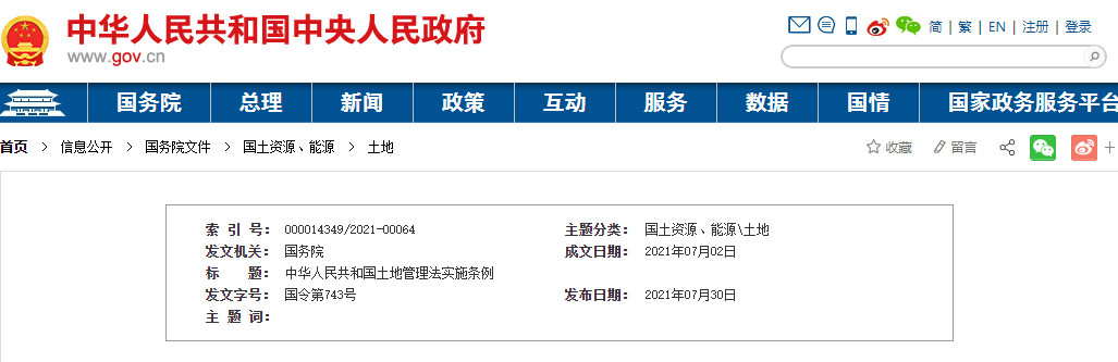 中華人民共和國國務院令第743號《中華人民共和國土地管理法實施條例》已經2021年4月21日國務院第132次常務會議修訂通過,現(xiàn)予公布,自2021年9月1日起施行。 總理 李克強2021年7月2日中華人民共和國土地管理法實施條例(1998年12月27日中華人民共和國國務院令第256號發(fā)布 根據201...