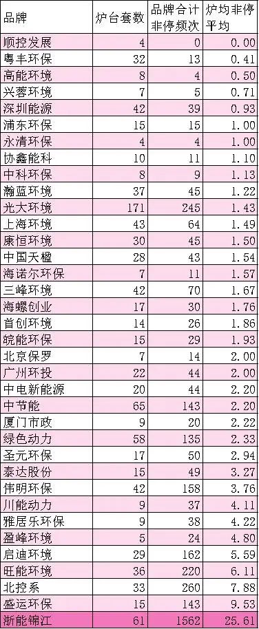 文章導(dǎo)讀本文根據(jù)行業(yè)知名度、業(yè)務(wù)體量、業(yè)務(wù)涉及地域。選取了36個(gè)在垃圾焚燒行業(yè)里已經(jīng)具有品牌知名度的品牌企業(yè)。橫向?qū)Ρ冗@些品牌企業(yè)的非計(jì)劃停爐、在線故障和計(jì)劃內(nèi)停爐工況情況。36家品牌企業(yè)分別為——北京保羅、北控系 、川能動(dòng)力 、高能環(huán)境、光大環(huán)境、廣州環(huán)投、海螺創(chuàng)業(yè)、海諾爾環(huán)保、瀚藍(lán)環(huán)境、康恒環(huán)境...