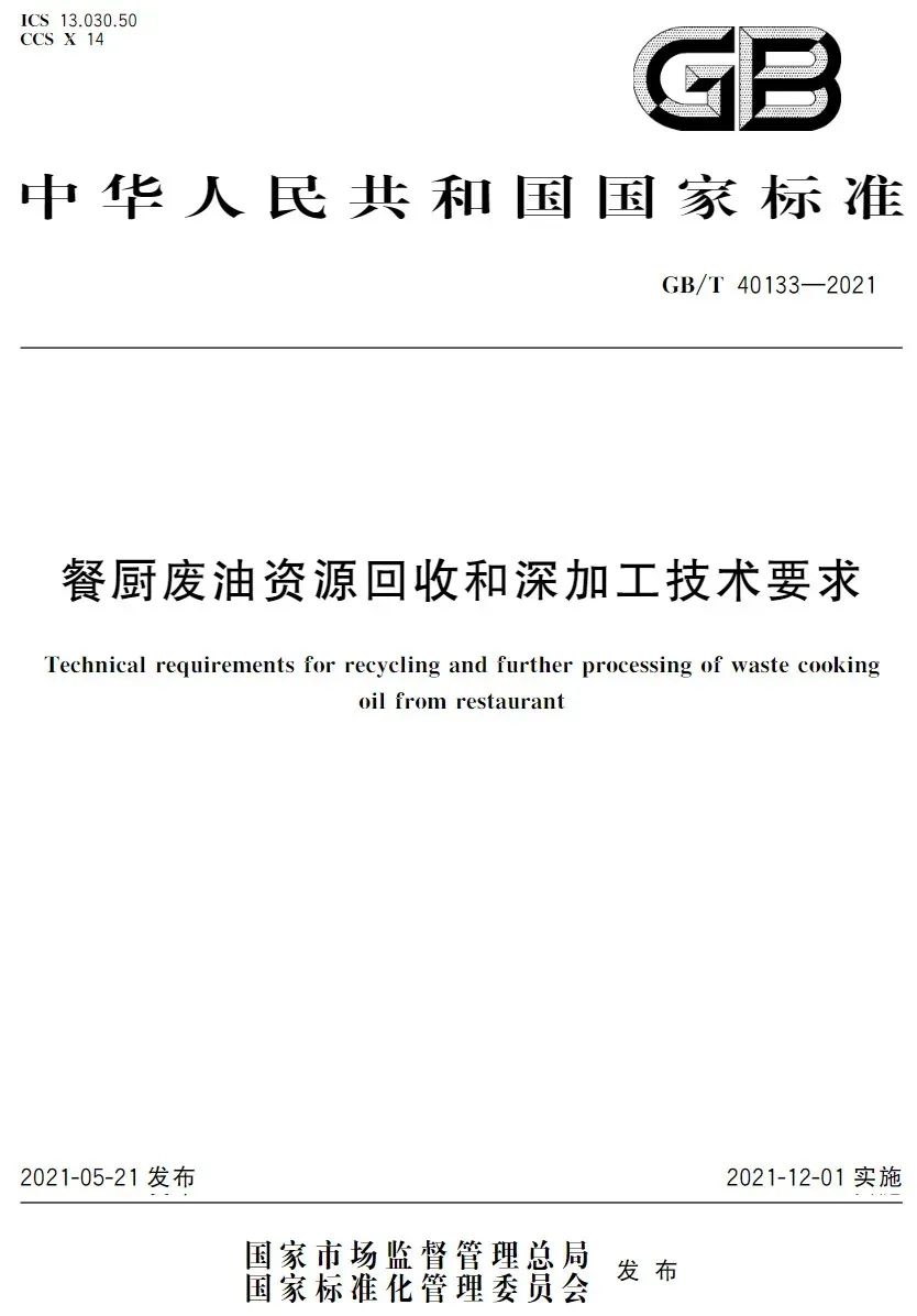 近日,由北京工商大學(xué)、深圳市朗坤環(huán)境集團(tuán)股份有限公司等八家單位共同起草的GB/T 40133-2021《餐廚廢油資源回收和深加工技術(shù)要求》,于2021年5月21日經(jīng)國(guó)家市場(chǎng)監(jiān)督管理總局(國(guó)家標(biāo)準(zhǔn)化管理委員會(huì))批準(zhǔn)發(fā)布,自2021年12月1日起實(shí)施。朗坤環(huán)境集團(tuán)副總裁楊友強(qiáng)博士、生物柴油技術(shù)總監(jiān)蘇躍華...
