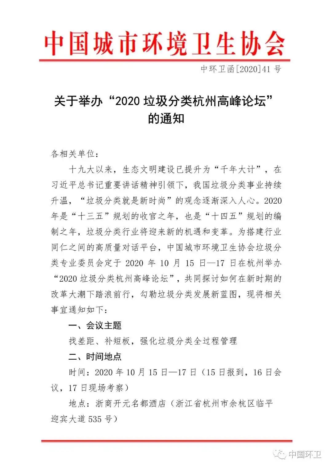文章導(dǎo)讀2020年10月16日,由中國(guó)城市環(huán)境衛(wèi)生協(xié)會(huì)和杭州市人民政府主辦,中環(huán)協(xié)垃圾分類(lèi)專業(yè)委員會(huì)、杭州市城市管理局、浙江聯(lián)運(yùn)環(huán)境工程股份有限公司承辦的“2020垃圾分類(lèi)杭州高峰論壇”在杭州隆重開(kāi)幕,來(lái)自22個(gè)?。ㄖ陛犑?自治區(qū))100多個(gè)城市的150多個(gè)環(huán)衛(wèi)管理部門(mén)、180多家企業(yè)和10家高校的...