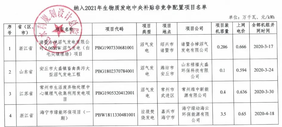 詳情如下:根據(jù)《國家發(fā)展改革委 財(cái)政部 國家能源局關(guān)于印發(fā)〈2021年生物質(zhì)發(fā)電項(xiàng)目建設(shè)工作方案〉的通知》(發(fā)改能源〔2021〕1190號)、《國家可再生能源信息管理中心關(guān)于反饋納入2021年生物質(zhì)發(fā)電中央補(bǔ)貼非競爭配置項(xiàng)目名單的函》(再生能信息函〔2022〕4號)、《國家可再生能源信息管理中心關(guān)于...