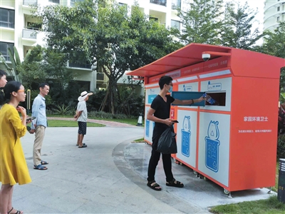 居民正在使用智能垃圾分類(lèi)柜投放垃圾。符吉茂 攝“既環(huán)保,又能換錢(qián),還能提高我們的垃圾分類(lèi)意識(shí)和分類(lèi)正確率,一舉多得,這個(gè)智能垃圾分類(lèi)柜值得點(diǎn)贊。”6月26日,家住崖州區(qū)保利·崖州灣小區(qū)居民候東將一個(gè)礦泉水瓶投進(jìn)“大胃貓”智能垃圾分類(lèi)柜后笑著說(shuō)。日前,為助力三亞市生活垃圾分類(lèi)工作,建設(shè)“無(wú)廢城市”,崖...