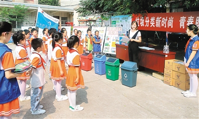 宣講員在為小學生講解垃圾分類常識。(資料圖片)16日,西安市政府關于市十六屆人大常委會第二十八次會議對全市生活垃圾分類管理情況報告審議意見的研究處理情況報告,提交市十六屆人大常委會第三十二次會議審議。記者從報告獲悉,去年以來,全市加快末端設施建設,西咸、鄠邑兩個垃圾焚燒場項目正在加緊收尾工作,加快推...
