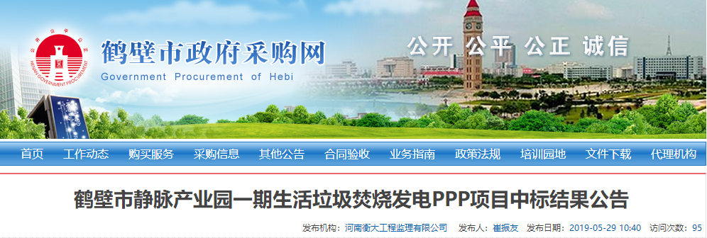中國環(huán)聯(lián)網(wǎng)獲悉,5月29日,河南省鶴壁市靜脈產(chǎn)業(yè)園一期生活垃圾焚燒發(fā)電PPP項目發(fā)布中標結(jié)果公告,河南城發(fā)環(huán)境股份有限公司(牽頭人)、上??岛悱h(huán)境股份有限公司、中國電建集團河南工程有限公司組成的聯(lián)合體成為中標的社會資本方。主要成交條件:1、總投資概算:項目總投資 57570.52萬元2、項目合作期限...