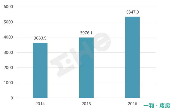 1 危廢市場現(xiàn)狀近年來,隨著危廢行業(yè)政策的逐漸完善,我國危廢市場規(guī)模高速增長。根據(jù)國家統(tǒng)計局數(shù)據(jù),2016年我國危廢產(chǎn)生量5347萬噸。由于部分工業(yè)企業(yè)未嚴格申報及偷排量大,我國危廢實際產(chǎn)量與統(tǒng)計數(shù)據(jù)相差較大。有專家預(yù)測到2018年我國實際危廢產(chǎn)量至少在1.3億噸,存在著巨大的處置需求缺口。圖1:我...