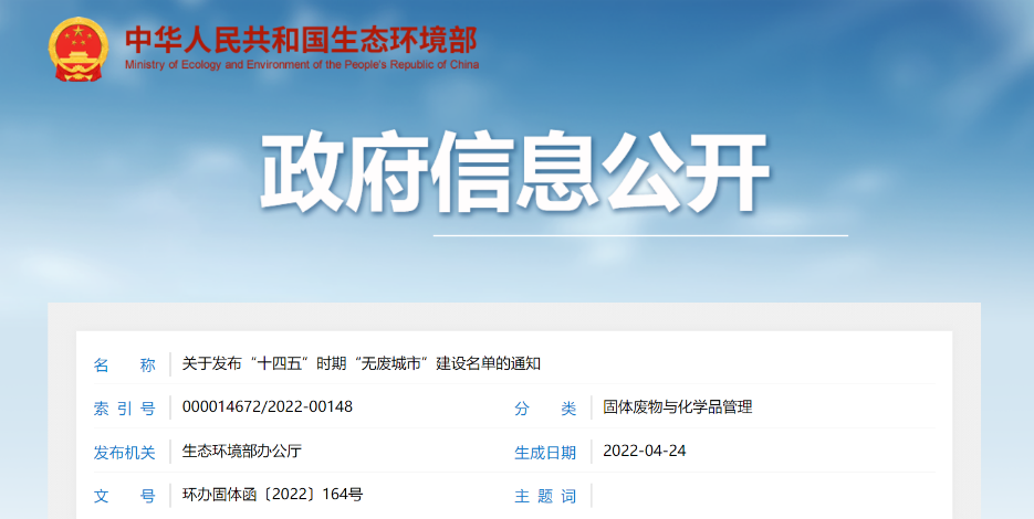重磅官宣 | 關(guān)于發(fā)布“十四五”時(shí)期“無(wú)廢城市”建設(shè)名單的通知