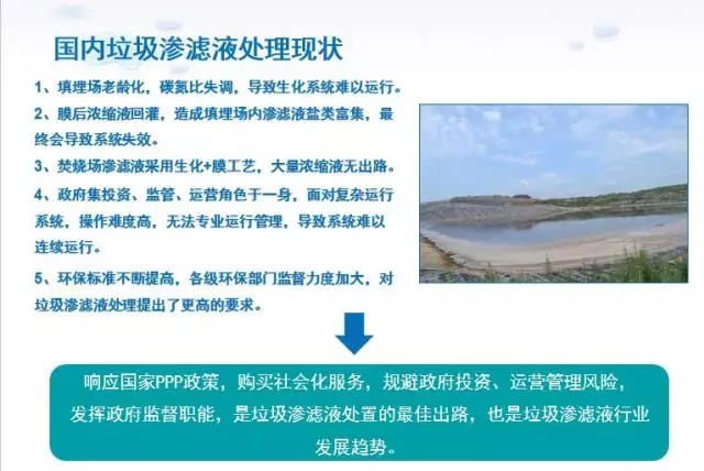 在2017年5月中國環(huán)聯(lián)第一屆固廢技術(shù)論壇上,大連廣泰源環(huán)??萍加邢薰緦ξ覈鴿B濾液處理現(xiàn)狀進行了總結(jié),并對垃圾滲濾液的處置提出了響應(yīng)國家PPP政策,購買社會化服務(wù),規(guī)避政府投資、運營管理風(fēng)險,發(fā)揮政府監(jiān)督職能,是垃圾滲濾液處置的行業(yè)發(fā)展趨勢。