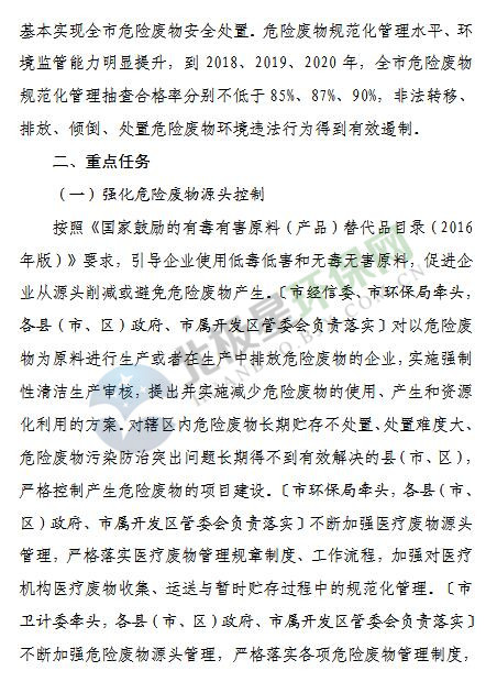 日前,山東省聊城市印發(fā)《聊城市打好危險廢物治理攻堅戰(zhàn)作戰(zhàn)方案(2018—2020年)》,詳情如下: