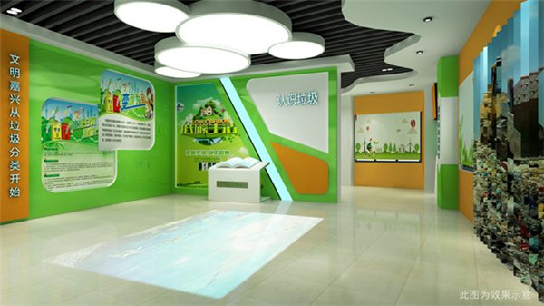 第二展區(qū)通過(guò)圖文、視頻及智能設(shè)備,為人們展示生活垃圾的種類和來(lái)源。在“三化四分”創(chuàng)新模式展廳,智力闖關(guān)、kinect垃圾分類互動(dòng),以及多媒體模擬等體驗(yàn)項(xiàng)目,將垃圾分類知識(shí)與現(xiàn)代科技融于同一空間,使參觀者獲得對(duì)垃圾分類的直觀感受和切身體驗(yàn)。以嘉興市垃圾處理模式為基礎(chǔ),該展廳還依據(jù)減量化、無(wú)害化、資源化原則,從分類投放、分類收集、分類運(yùn)輸、分類處置4個(gè)步驟,展現(xiàn)垃圾分類處理過(guò)程,充分發(fā)揮展品的展教功能。