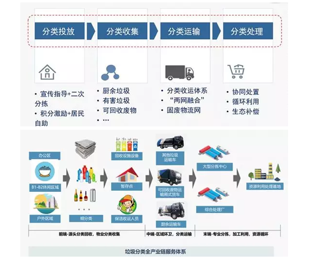 隨著“強制”垃圾分類的推進,目前我國已經(jīng)進入到垃圾分類下的固廢產(chǎn)業(yè)3.0時代(參考鏈接→ 薛濤:合久必分、分久必合——垃圾分類下的固廢產(chǎn)業(yè)新格局),E20研究院認為,這個時代,建立與生活垃圾分類品種相配套的收運體系,建立與再生資源利用相協(xié)調(diào)的回收體系,完善與垃圾分類相銜接的終端處理體系,已成為產(chǎn)業(yè)發(fā)展的核心內(nèi)容。