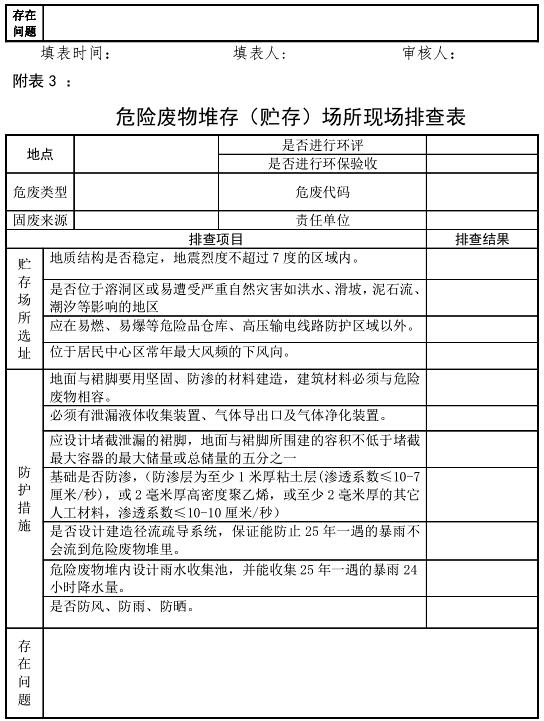 3.危險(xiǎn)廢物堆存(貯存)場(chǎng)所現(xiàn)場(chǎng)排查表