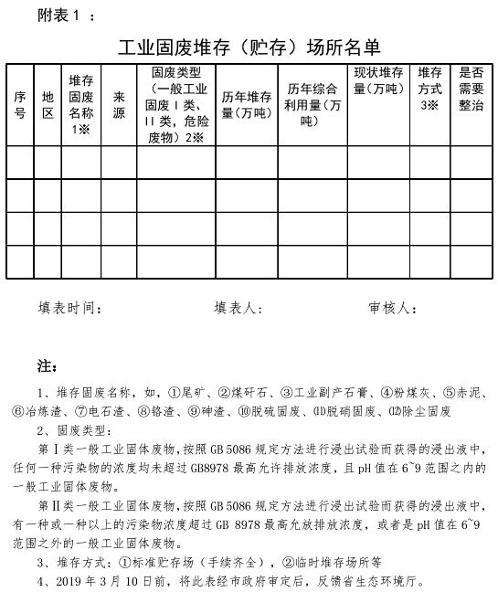 附表:1.工業(yè)固廢堆存(貯存)場(chǎng)所名單