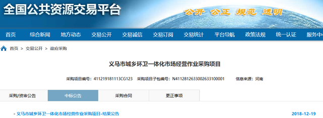 原標(biāo)題:1535.76萬(wàn)/年,龍馬環(huán)衛(wèi)中標(biāo)河南義馬市城鄉(xiāng)環(huán)衛(wèi)一體化項(xiàng)目