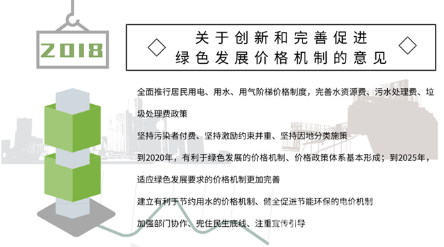與人民生活息息相關(guān),與工、商、農(nóng)生產(chǎn)緊密相連,環(huán)境保護(hù)工作并非是在“孤軍奮戰(zhàn)”。綠色價(jià)改已經(jīng)成為環(huán)保行業(yè)的高頻詞,清潔電力、天然氣以及飲用水,還有2018年重新進(jìn)入大眾視野的污水處理費(fèi)和在該政策中首次明確提出的垃圾計(jì)量收費(fèi)模式等,都備受矚目。