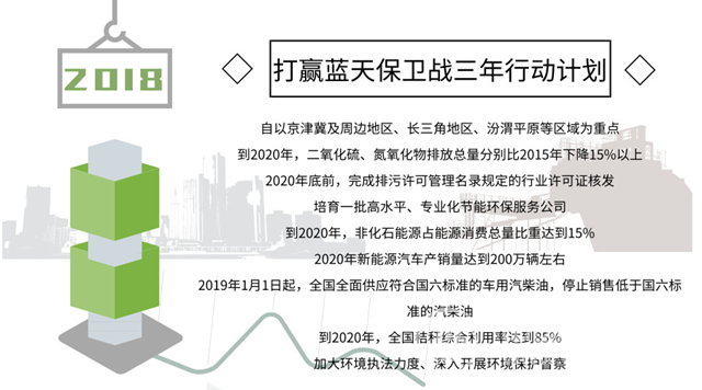 “大氣十條”目標(biāo)如約完成,鞏固既得成果也是絲毫不能懈怠。緊跟著我國(guó)就提出了“藍(lán)天保衛(wèi)戰(zhàn)”概念,并且2018年-2020年三年行動(dòng)計(jì)劃正式發(fā)布。