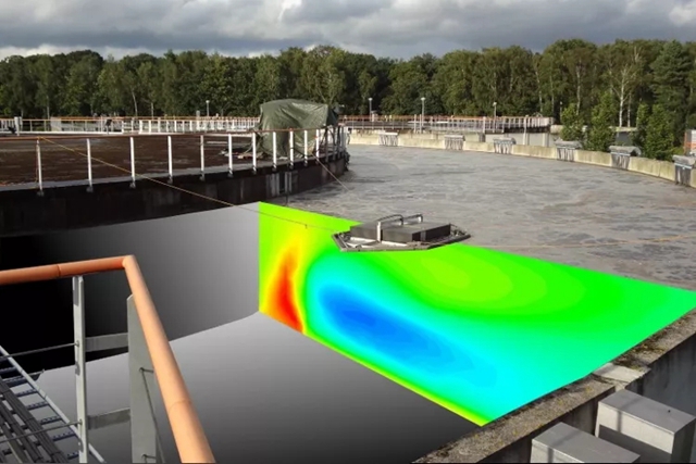 CFD是Computational Fluid Dynamics的英文縮寫,即計算流體動力學。CFD是通過計算機對包括流體流動和熱傳導等物理現(xiàn)象的系統(tǒng)進行的分析。在污水廠,了解系統(tǒng)的水力特性對污水處理效率有重要影響,例如污水倉可能會遇到因為攪拌設備選擇和布局不合理導致池內(nèi)死水區(qū)和污泥沉淀等問題。對工藝優(yōu)化和改造而言,中試實驗不便宜,而且你無法找到10個真正的系統(tǒng)來測試,但你可以通過CFD建模,對不同運行條件進行虛擬仿真測試,提高測試速度和降低成本。可視化的3D模型可以幫助運行人員更好地了解污水廠的運行概況。如下圖所示,這些CFD模型,可以將溶解氧、總氮濃度等參數(shù)可視化?;谶@些分析結果,管理人員可以制定相應措施,減少不必要的曝氣量,提高能效。