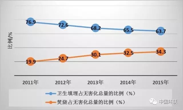 垃圾焚燒與填埋法相比,環(huán)境保護(hù)程度和綜合效益更高,因而垃圾焚燒成為近年來國家提倡的無害化處理方式,占比逐年上升。