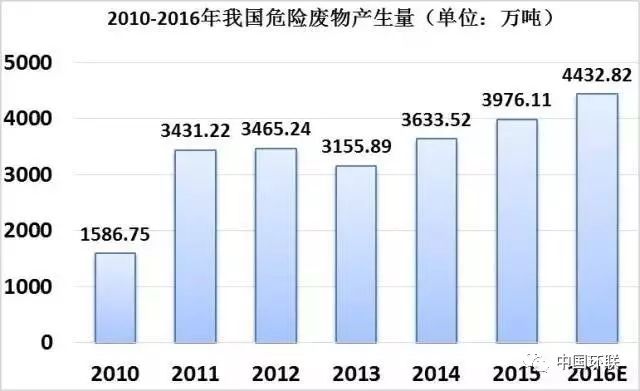 2016年,危廢真正實(shí)現(xiàn)集中處置的比例估計(jì)不到35%;2017年,危廢產(chǎn)生量預(yù)計(jì)超過6000萬噸,危廢處理市場(chǎng)挑戰(zhàn)和機(jī)遇并存。