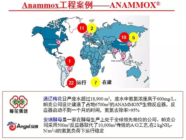 目前,Anammox主要用于污泥消化液和含高氨氮工業(yè)廢水的處理,且技術(shù)發(fā)展已較為成熟,在美國、德國、瑞士等有較多的應(yīng)用案例。