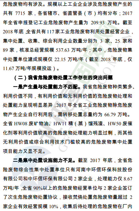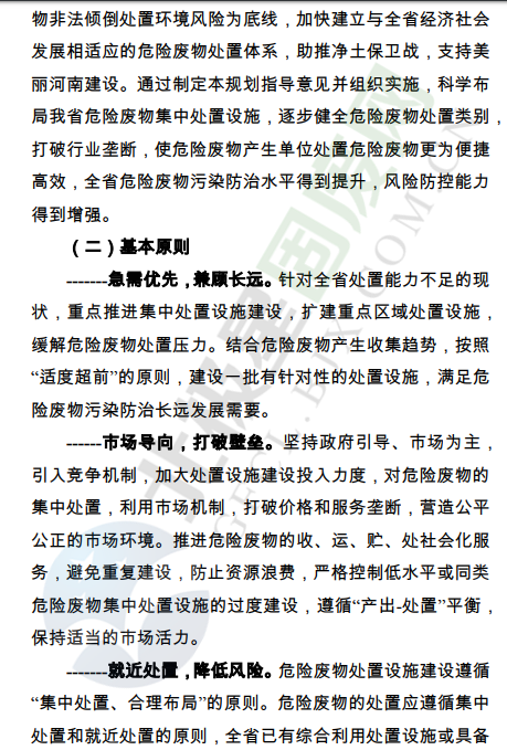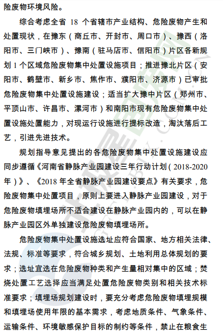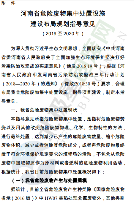 為深入貫徹習近平生態(tài)文明思想,全面落實《中共河南省委河南省人民政府關于全面加強生態(tài)環(huán)境保護堅決打好污染防治攻堅戰(zhàn)的實施意見》(豫發(fā)﹝2018﹞19號),根據(jù)《河南省人民政府印發(fā)河南省污染防治攻堅戰(zhàn)三年行動計劃(2018—2020年)的通知》(豫政﹝2018﹞30號)要求,我廳起草了《河南省危險廢物集中處置設施建設布局規(guī)劃指導意見》,現(xiàn)印發(fā)給你們,請結合實際,認真抓好落實。