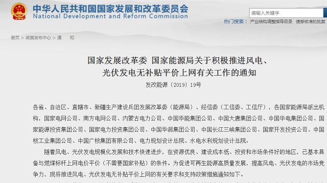 對(duì)按照本通知要求在2020年底前核準(zhǔn)(備案)并開(kāi)工建設(shè)的風(fēng)電、光伏發(fā)電平價(jià)上網(wǎng)項(xiàng)目和低價(jià)上網(wǎng)項(xiàng)目,在其項(xiàng)目經(jīng)營(yíng)期內(nèi)有關(guān)支持政策保持不變。國(guó)家發(fā)展改革委、國(guó)家能源局將及時(shí)研究總結(jié)各地區(qū)的試點(diǎn)經(jīng)驗(yàn),根據(jù)風(fēng)電、光伏發(fā)電的發(fā)展?fàn)顩r適時(shí)調(diào)整2020年后的平價(jià)上網(wǎng)政策。