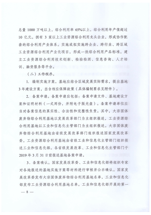 相關(guān)資料下載:國(guó)家發(fā)展改革委辦公廳 工業(yè)和信息化部辦公廳關(guān)于推進(jìn)大宗固體廢棄物綜合利用產(chǎn)業(yè)集聚