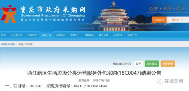 重慶市兩江新區(qū)生活垃圾分類項(xiàng)目中標(biāo)結(jié)果