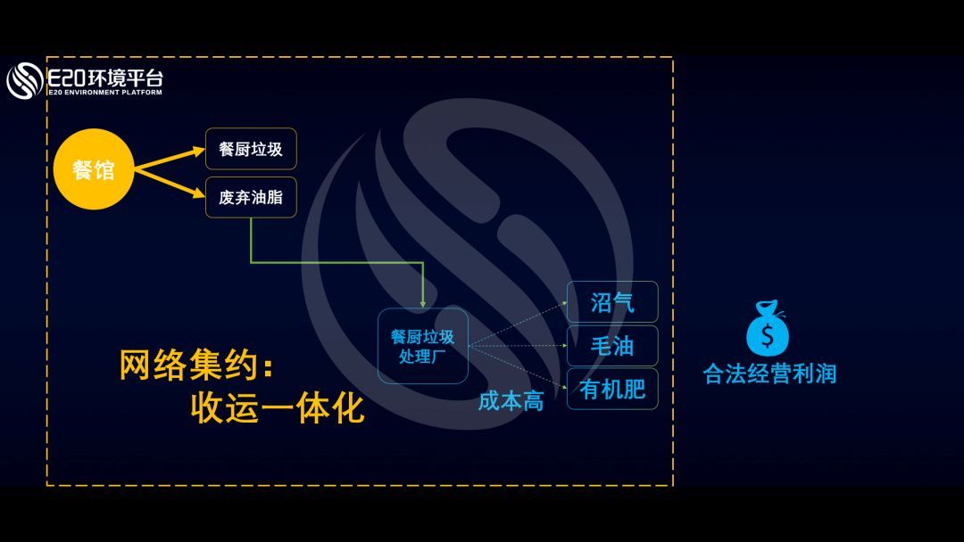 目前,隨著企業(yè)收運(yùn)能力的提升以及地方政府因豬瘟危機(jī)而被迫啟動(dòng)的強(qiáng)力監(jiān)管(政府承諾的遲到的兌現(xiàn)),餐廚運(yùn)營環(huán)境有所改善。同時(shí),一些領(lǐng)先的餐廚運(yùn)營企業(yè)通過智慧化管理介入前端收運(yùn),實(shí)現(xiàn)網(wǎng)絡(luò)集約,一方面幫助企業(yè)能有效降低收運(yùn)成本;另一方面企業(yè)能獲得足夠的餐廚垃圾,形成包括沼氣、毛油、有機(jī)肥等末端產(chǎn)品來獲得收益。值得一提的是,前面所述主要是前端的網(wǎng)絡(luò)集約,另一個(gè)重要的方向是后端的網(wǎng)絡(luò)集約,即末端產(chǎn)品的銷售如何順利達(dá)成。