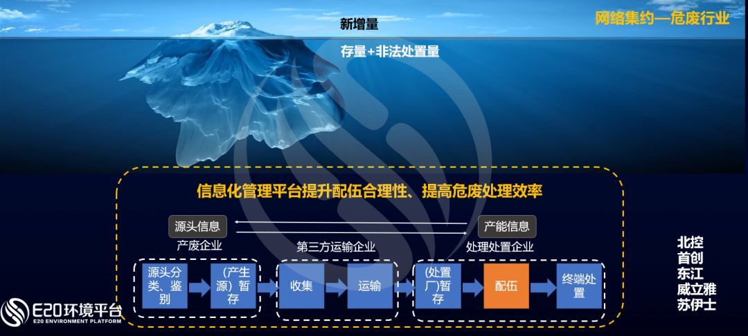 在危廢領(lǐng)域,目前已有多家企業(yè)通過建設(shè)信息化平臺(tái),收集源頭產(chǎn)廢企業(yè)信息及處理處置企業(yè)信息,協(xié)調(diào)危廢配伍,降低風(fēng)險(xiǎn)并提高項(xiàng)目處置效率。