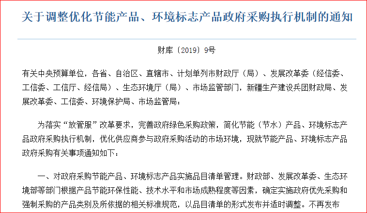 關于調整優(yōu)化節(jié)能產品、環(huán)境標志產品政府采購執(zhí)行機制的通知