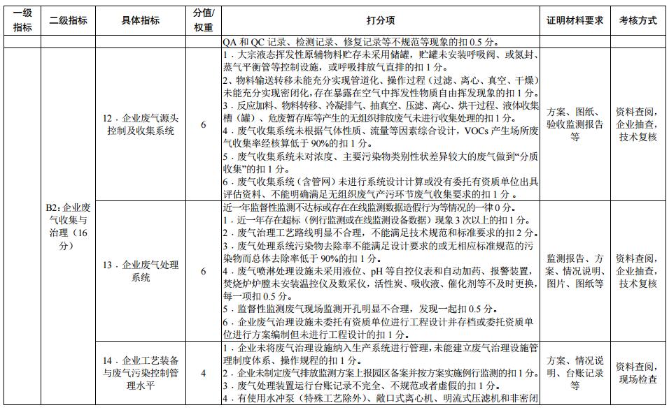 3﹒企業(yè)應(yīng)根據(jù)各類廢氣特性、產(chǎn)生量、污染物濃度、溫度、壓力等因素綜合分析選擇合適、高效的末端處理工藝,采用吸附、催化凈化、焚燒等工藝的應(yīng)符合相關(guān)標(biāo)準(zhǔn)規(guī)范要求;無相應(yīng)標(biāo)準(zhǔn)規(guī)范的,污染物總體去除率不低于90%。廢氣治理設(shè)施應(yīng)納入生產(chǎn)系統(tǒng)進(jìn)行管理,配備連續(xù)有效的自動監(jiān)測以及記錄設(shè)施,提高廢氣處理的自動化程度,噴淋處理設(shè)施應(yīng)配備液位、PH等自控儀表、采用自動加藥。園區(qū)實(shí)行統(tǒng)一的LDAR管理制度,統(tǒng)一評估企業(yè)LDAR實(shí)施情況。