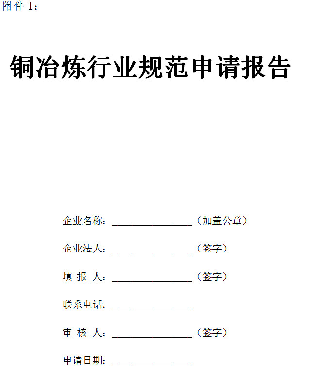 2.凡已建成投產(chǎn)1年以上(含1年)的銅冶煉企業(yè),均可依據(jù)《銅冶煉行業(yè)規(guī)范條件》申請審核。申請規(guī)范企業(yè)須編制《銅冶煉行業(yè)規(guī)范申請報告》(見附件1),并按要求提供相關材料,企業(yè)法人(或代表)、填報人和審核人須對申請材料的完整真實性負責并承擔相應責任。