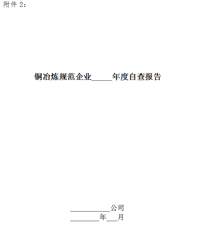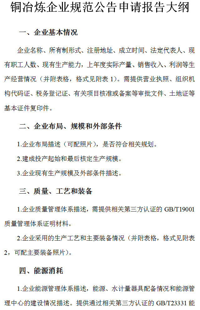 (三)本規(guī)范條件自2019年*月*日起實施,原《銅冶煉行業(yè)規(guī)范條件》(中華人民共和國工業(yè)和信息化部公告2014年第29號)同時廢止。本規(guī)范條件發(fā)布前已公告的企業(yè),須按照本規(guī)范條件要求重新申請公告。