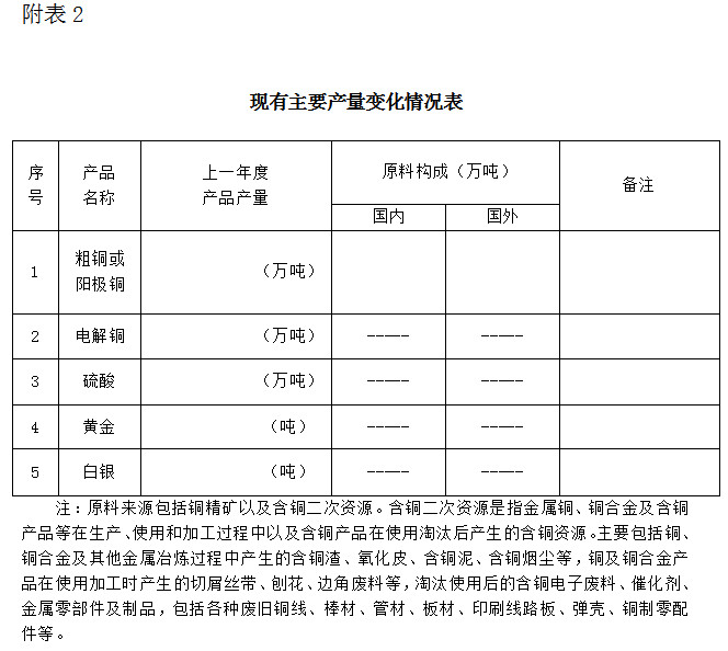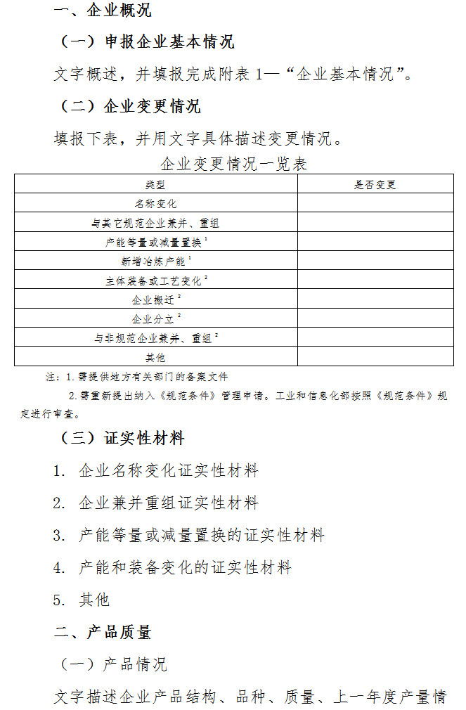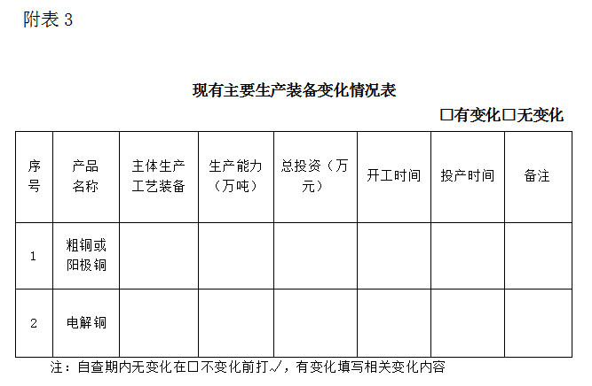已公告的規(guī)范企業(yè)如發(fā)生重大變化(異地改造,原地改造且主體工藝發(fā)生變化)需提出變更申請,重新填報《銅冶煉行業(yè)規(guī)范申請報告》,經(jīng)地方工業(yè)主管部門核實后,上報工業(yè)和信息化部;中央企業(yè)直接上報工業(yè)和信息化部。工業(yè)和信息化部實時進行變更公告。