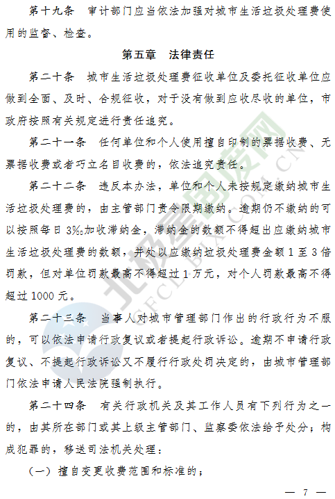 答:違反本辦法,單位和個人未按規(guī)定繳納城市生活垃圾處理費的,由主管部門責令限期繳納。逾期仍不繳納的可以按照每日千分之三加收滯納金,滯納金的數(shù)額不得超出應繳納城市生活垃圾處理費的數(shù)額,并處以應繳納垃圾處理費金額1至3倍罰款,但對單位罰款最高不得超過1萬元,對個人罰款最高不得超過1000元。