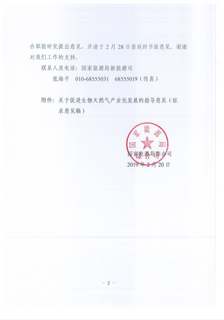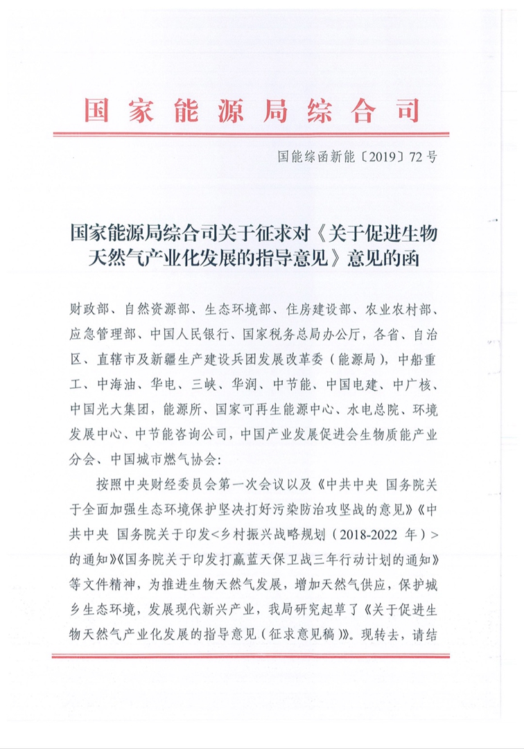 按照中央財經(jīng)委員會第一次會議以及《中共中央 國務(wù)院關(guān)于全面加強生態(tài)環(huán)境保護堅決打好污染防治攻堅戰(zhàn)的意見》《中共中央 國務(wù)院關(guān)于印發(fā)<鄉(xiāng)村振興戰(zhàn)略規(guī)劃(2018-2022年)>的通知》《國務(wù)院關(guān)于印發(fā)打贏藍天保衛(wèi)戰(zhàn)三年行動計劃的通知》等文件精神,為推進生物天然氣發(fā)展,增加天然氣供應(yīng),保護城鄉(xiāng)生態(tài)環(huán)境,發(fā)展現(xiàn)代新興產(chǎn)業(yè),我局研究起草了《關(guān)于促進生物天然氣產(chǎn)業(yè)化發(fā)展的指導(dǎo)意見(征求意見稿)》。現(xiàn)轉(zhuǎn)去,請結(jié)合職能研究提出意見,并請于2月28日前返回書面意見。謝謝對我們工作的支持。