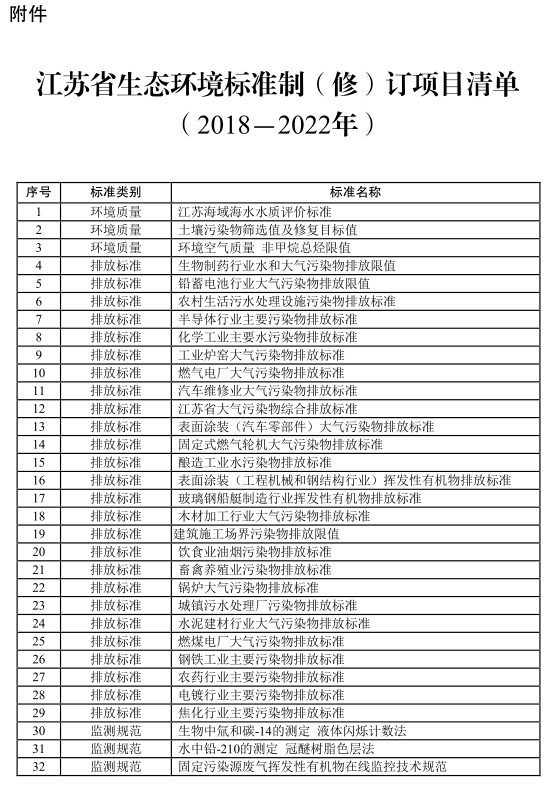 附件:江蘇省生態(tài)環(huán)境標(biāo)準(zhǔn)制(修)訂項(xiàng)目清單(2018-2022年)
