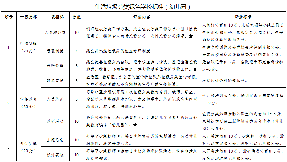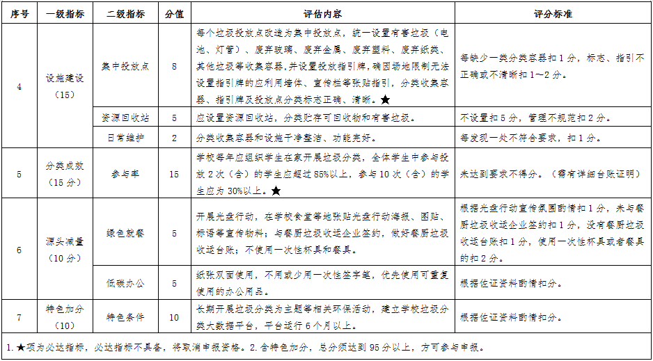 2.學(xué)校(含幼兒園、中小學(xué)和高校)。開展生活垃圾分類且成效顯著,具體條件詳見《生活垃圾分類綠色學(xué)校標準》。