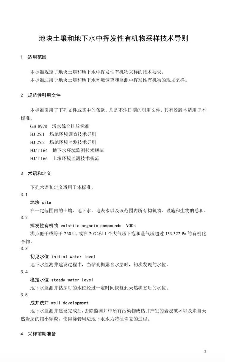 本標(biāo)準(zhǔn)規(guī)定了地塊土壤和地下水中揮發(fā)性有機(jī)物采樣的技術(shù)要求。