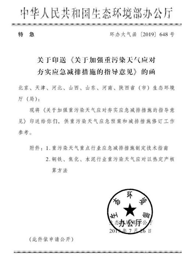 原標題:關于印送《關于加強重污染天氣應對夯實應急減排措施的指導意見》的函