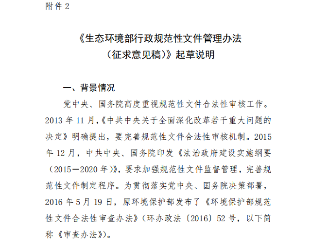2.《生態(tài)環(huán)境部行政規(guī)范性文件管理辦法(征求意見(jiàn)稿)》起草說(shuō)明