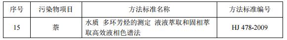 四、 “水污染物濃度測定方法標準”表中增加廢水中萘的監(jiān)測分析方法: