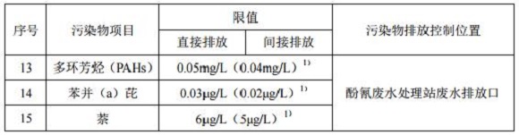 二、 表 1、表 2、表 3 中增加表注“注 1):酚氰廢水單獨處 理,執(zhí)行括號外排放限值;酚氰廢水與生活污水等其他廢水混合 處理,執(zhí)行括號內(nèi)排放限值。”