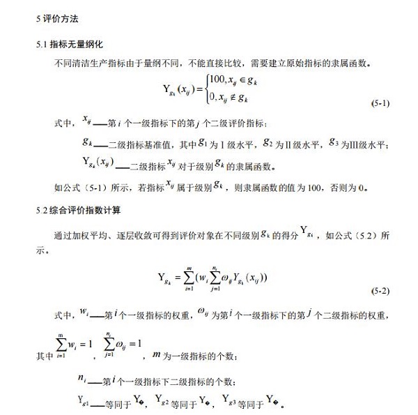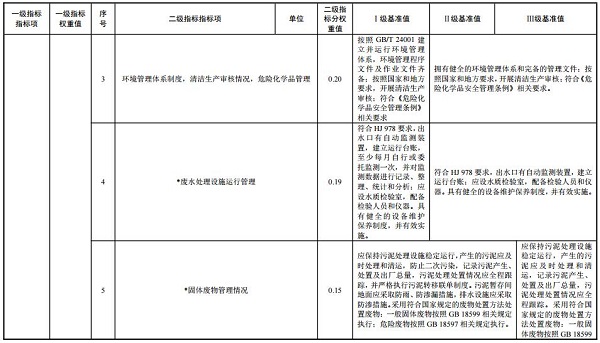 本指標(biāo)體系依據(jù)綜合評價所得分值將清潔生產(chǎn)等級劃分為三級,Ⅰ級為國際清潔生產(chǎn)領(lǐng)先水平;Ⅱ級為國內(nèi)清潔生產(chǎn)先進水平;Ⅲ級為國內(nèi)清潔生產(chǎn)一般水平。隨著技術(shù)的不斷進步和發(fā)展,本評價指標(biāo)體系將適時修訂。