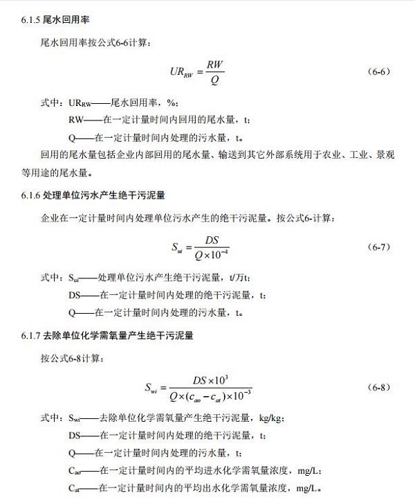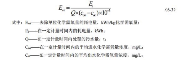 企業(yè)在一定計量時間內(nèi)處理單位化學(xué)需氧量需要消耗的用電量,耗電量僅計算處理污水達到要求的排放標(biāo)準時所消耗的電量,不含再生利用過程消耗的電能(同時包括辦公使用的耗電量,不包括基建、生活用耗電量等)。按公式6-3計算: