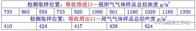 從上面表格數(shù)據(jù)可見,噴淋塔出口濃度都在410g/m³以上,其意味著吸附油氣的
