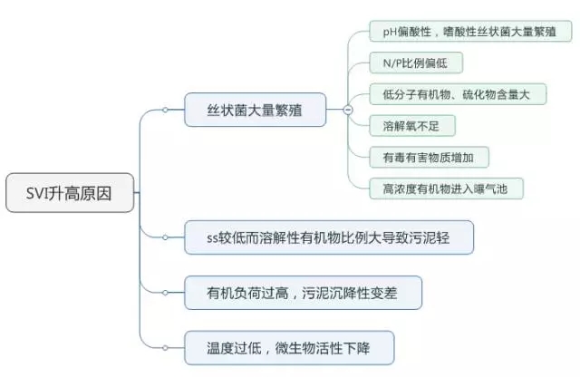 SVI值與污泥負荷有關(guān),污泥負荷過高或過低,活性污泥的代謝性能都會變差,SVI值也會變很高,存在出現(xiàn)污泥膨脹的可能。