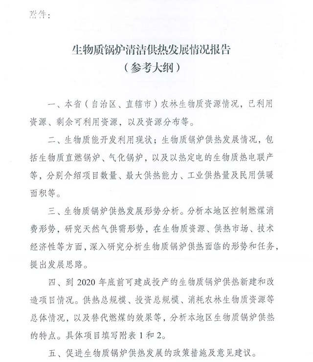 近日,國(guó)家能源局下發(fā)《國(guó)家能源局綜合司關(guān)于請(qǐng)報(bào)送生物質(zhì)鍋爐清潔供熱有關(guān)情況的通知》(以下簡(jiǎn)稱(chēng)《通知》),要求各地方能源局、發(fā)改委、有關(guān)中央企業(yè)報(bào)送生物質(zhì)鍋爐清潔供熱相關(guān)情況。