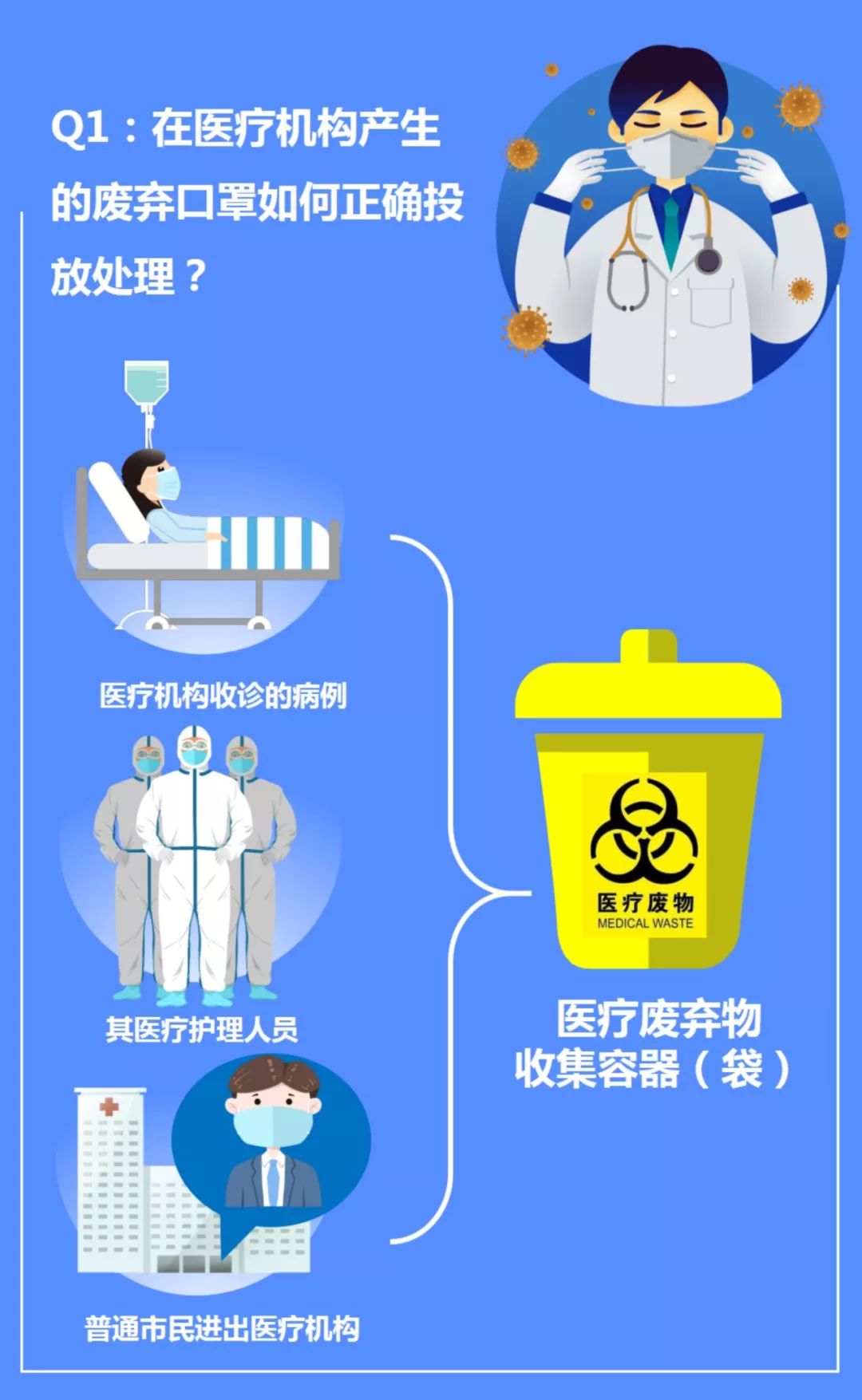 因日常工作或求醫(yī)問診等情況需要進(jìn)出醫(yī)療機(jī)構(gòu)公共區(qū)域的普通市民,建議也將廢棄口罩投入醫(yī)療機(jī)構(gòu)設(shè)置的醫(yī)療廢棄物收集容器(袋)中,納入醫(yī)療廢棄物進(jìn)行統(tǒng)一專項(xiàng)處置。